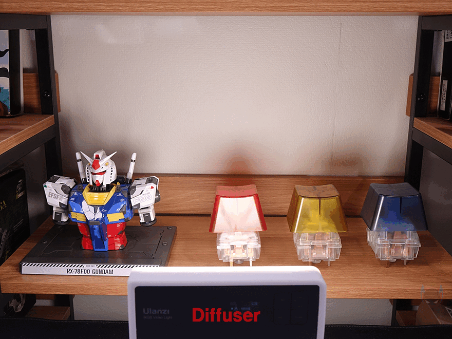 끝으로 직접 LT002 RGB 조명으로 촬영을 해보면, 7인치 크기를 가졌기 때문에 소규모 공간에서도 1개만으로 충분히 전체적인 공간의 분위기 연출을 나타나게 해 줍니다. 색온도나 RGB 조명으로 다양한 연출을 할 수 있고, 앞서 확인한 디퓨저(Diffuser)나 벌집모양 커버(Honeycomb cover)를 사용하면 좀 더 분위기를 낮추는 느낌도 주죠. 그래서, LT002 RGB 조명을 1개만 사용할 때는 개인 공간이나 또는 소품 같은 촬영에서 유용하게 사용하면 되겠습니다.