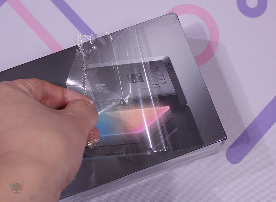 제품박스는 Ulanzi의 VL series 제품들처럼 LT series도 박스 전제가 밀봉처리되어 있습니다. 소비자입장에선 좀 더 신뢰를 가질 수 있죠. 그리고, 박스 전면에는 모델명과 제품 이미지를 담고 있는데, 최근 Ulanzi에서 선보이는 RGB 조명과 후면 디자인이 유사하다라는걸 짐작할 수 있습니다. 쉽게 말해, 후면에 직관적인 버튼들이 배치되었다라는 거죠. 이밖에도 박스 측면에는 제품 특징으로 색온도 범위와 배터리 용량, 색조와 채도로 조절하는 RGB 기능을 표시해 놨습니다.