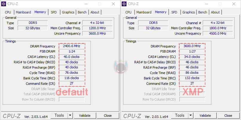 끝으로, 앞서 TRINITY RGB DDR5 7200MHz 메모리에 저장된 프로파일을 확인했듯이 인텔 XMP와 AMD EXPO 둘 다 적용되어 있는데, 인텔과 AMD 메모리 컨트롤러와 메모리 클럭 비율이 다르죠. 그래서, AMD 기반 PC에서 하이닉스 A다이 메모리를 사용하면 오버클럭을 했을 때 최고 높은 클럭이 6400MHz이며 평균적으로 6000~6200MHz 클럭으로 오버클럭되는경우가 많습니다. 그래서, TRINITY RGB DDR5 7200MHz 메모리에 EXPO 프로파일 값이 6000MHz과 6400MHz 2가지인데, 리뷰에선 AMD PC에서 사용했을 때, 6000MHz까지 적용된 것을 확인할 수 있었죠. 물론, AMD 역시 CPU와 메인보드 환경에 따라서 6400MHz까지 적용될 수 있습니다.