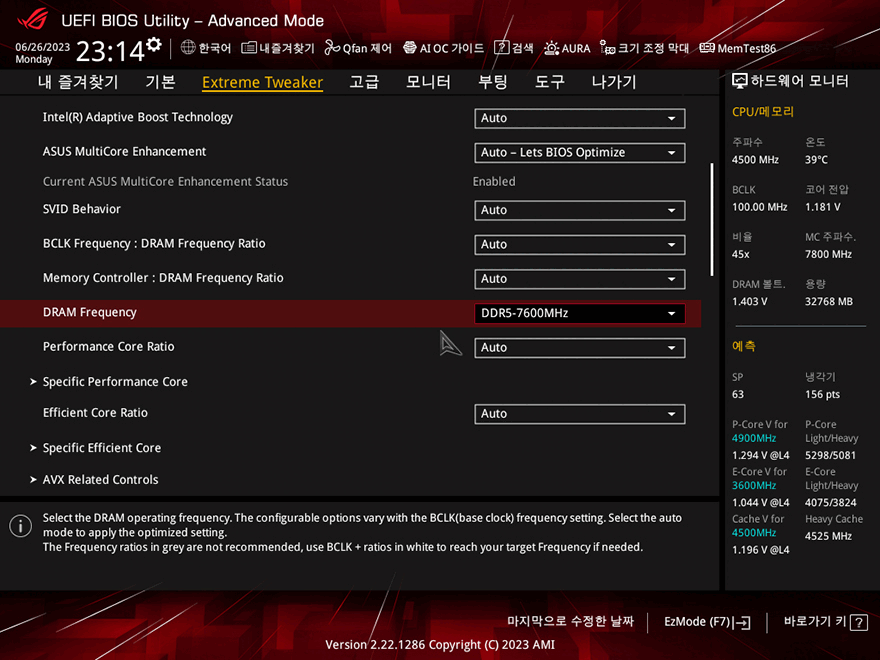 시작에서 언급했듯이 TRINITY RGB DDR5 7200MHz 메모리는 하이닉스 A다이(Hynix A-Die) 칩을 사용했습니다. 그래서, 현재 TRINITY RGB DDR5 메모리 최대 클럭 모델은 7800MHz까지 나왔으며, 8000MHz 클럭도 준비중이죠. 물론, 소비자가 메모리 모듈칩을 확인할 수 있는 방법은 Thaiphoon Burner 프로그램밖에 없는데, TRINITY RGB DDR5 7200MHz 메모리를 확인해보면, 하이닉스 A다이 확인이 안됩니다. 물론, CPU-Z를 통해 램 제조사가 SK 하이닉스(Hynix)인걸 확인할 수 있죠. 그래서, 하이닉스 A다이가 사용되었다면, TRINITY RGB DDR5 7200MHz 메모리는 이보다 더 높은 정확히는 1.4V기준으로 CPU나 메인보드가 고급형이라면 7600MHz까지 어렵지 않게 오버클럭할 수 있습니다. 그래서, 직접 수동 오버클럭을 해 본 결과, 7600MHz 클럭까지 쉽게 적용된 것을 확인했고, 램 타이밍도 상위 모델처럼 CL36으로 적용했습니다.
