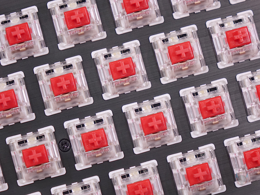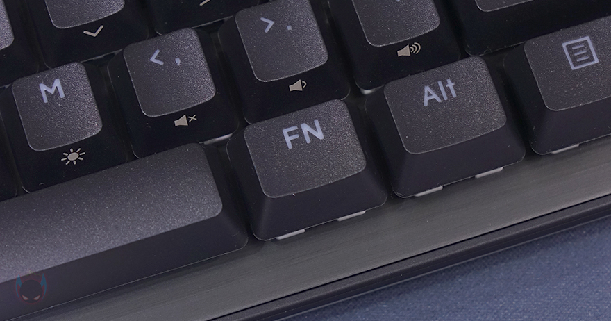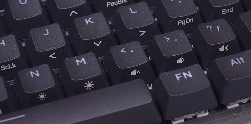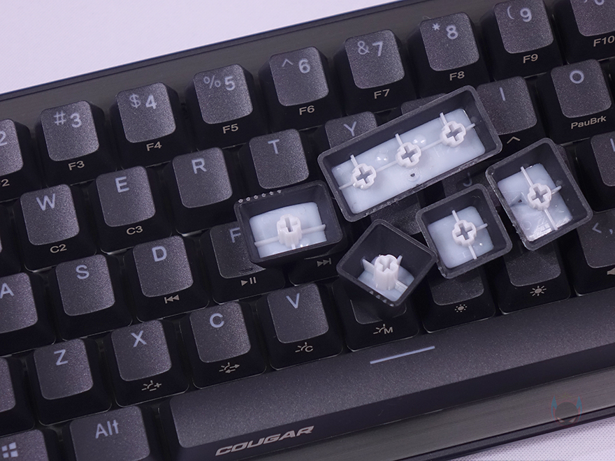 PURI MINI RGB 키보드의 키캡은 PBT 재질에 이중사출 방식으로 키캡 아래 LED 조명효과가 투과되도록 했습니다. 물론, 키 스위치부분에 RGB가 적용되지 않은 Non RGB PURI MINI 키보드 같은 경우에는 동일하게 이중사출 PBT키캡이지만, 투과되지 않으며, 키캡 프로파일도 DSA로 적용되었죠. 그리고, Fn키와 사용되는 기능 표시들은 키캡 측면에 인쇄방식으로 처리했으며, 스위치는 앞서 제품 박스에서 확인했듯이 게이트론 적축이 사용되었는데, 모두 기본 윤활처리가 되어있습니다. 그리고, 스페이스-바 같은 긴 키들의 스테빌라이저는 체리식이죠.