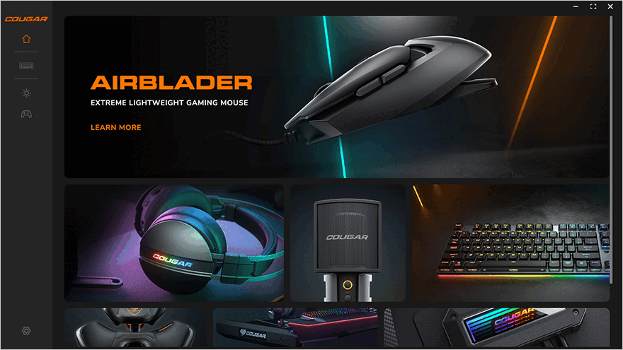 쿠거 PURI MINI RGB 키보드 역시 소프트웨어를 제공해주고 있는데, 쿠거는 PIX라는 프로그램으로 홈페이지에서 다운로드받아 설치한 후 실행해 보면, 인식된 장치에 새로운 펌웨어가 있는지 프로그램이 자동으로 확인하고 만약 최신 펌웨어가 있다면 업그레이드 여부를 알려줍니다. 그리고, 프로그램 인터페이스를 살펴보면, 메인화면은 홈페이지로 연결되는 상품 배너들을 보여주고, 앞에서 확인했던 백라이트 기능과 매크로 기능 외에도 프로그램에서 추가로 키 기능 변경과 운영체제에서 사용되는 Alt+Tab 같은 조합키를 게임 시 실행되지 않게 비활성화할 수 있으며, 3개의 프로파일도 사용자가 새로운 값으로 저장할 수 있습니다. 그리고, 프로그램 설정 메뉴를 통해서는 언어, 알림, 제품 사용법 강의, 초기화 같은 기능들도 사용할 수 있죠.