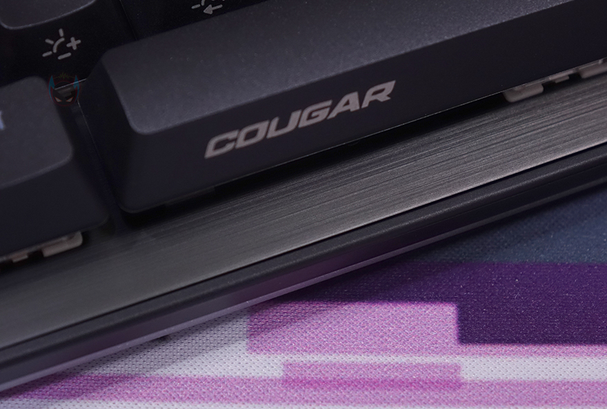 본격적으로 쿠거 PURI MINI RGB 키보드를 살펴보면, 미니 키보드 모델에서 역시 가장 먼저 눈에 들어오는 부분은 기본 제공되는 루프(roof) 덮개입니다. 쿠거는 2017년 첫 PURI 키보드 출시 때부터 당시 기성품 기계식 키보드 제품으로는 매우 드물게 플라스틱 소재로 자석방식의 전용 덮개를 제공했는데, 이제는 이 루프 덮개 기본 제공이 PURI 시리즈 키보드의 상징이 된 수준이죠. 그래서, PURI MINI RGB 키보드에서도 크기에 맞춘 자석 방식의 전용 루프 덮개를 제공해주고 있습니다. 덮개는 내부가 잘 보이지 않게 스모크 효과처럼 반투명으로 처리했으며, 안쪽에 4개의 자석이 적용되었고, 이는 키보드 모서리 부근에 적용된 나사와 접촉하면서 덮개 고정이 됩니다. 그리고, 덮개 한쪽에는 로고도 음각으로 새겨놨죠.