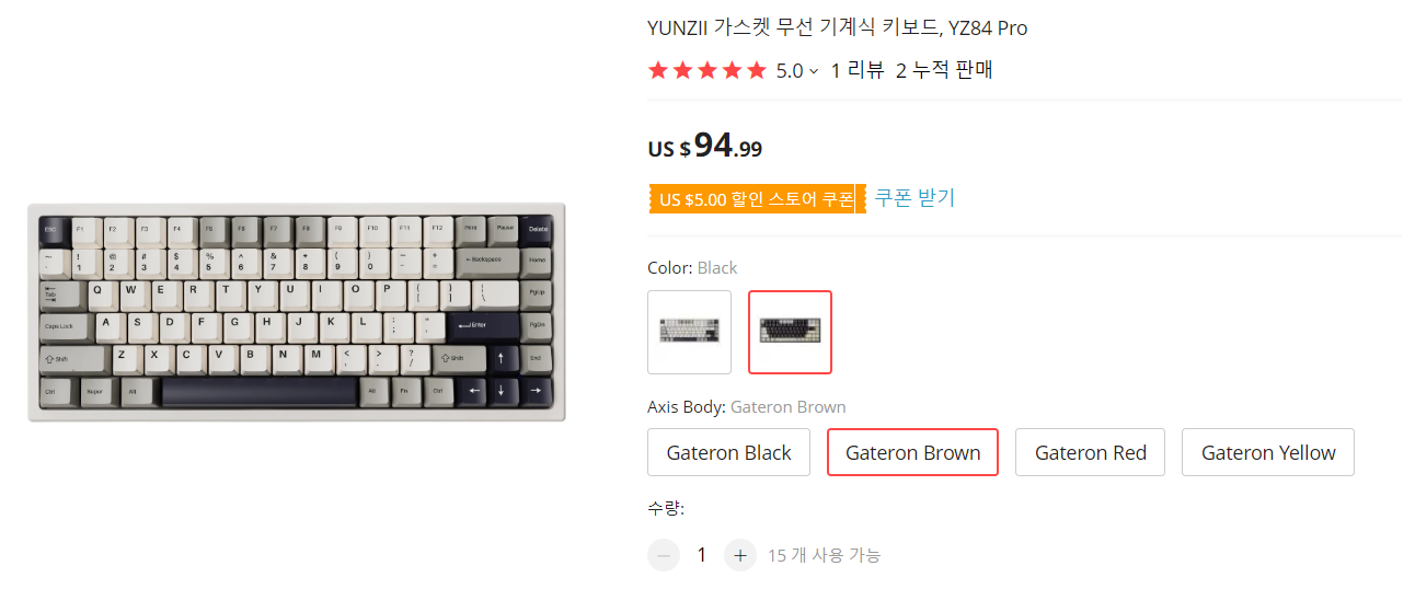 요즘 기계식 키보드에 많이 사용되는 스위치 중 하나가 바로 게이트론의 G 프로 스위치다. 소비자들에게 타건감으로 큰 인기를 얻고 있는데, 최근 YUNZII에서도 게이트론 G 프로 스위치만 사용된 모델을 출시했다. 바로, YZ84 Pro로 텐키리스보다 작으면서도 방향키와 특수키를 가진 전형적인 미니 키보드 중 하나다. 이번 7월 프로모션에는 참가하지 않았지만, 자체 스토어 할인과 할인 코드와 결제 할인은 모두 적용되니 평소보다 저렴하다.