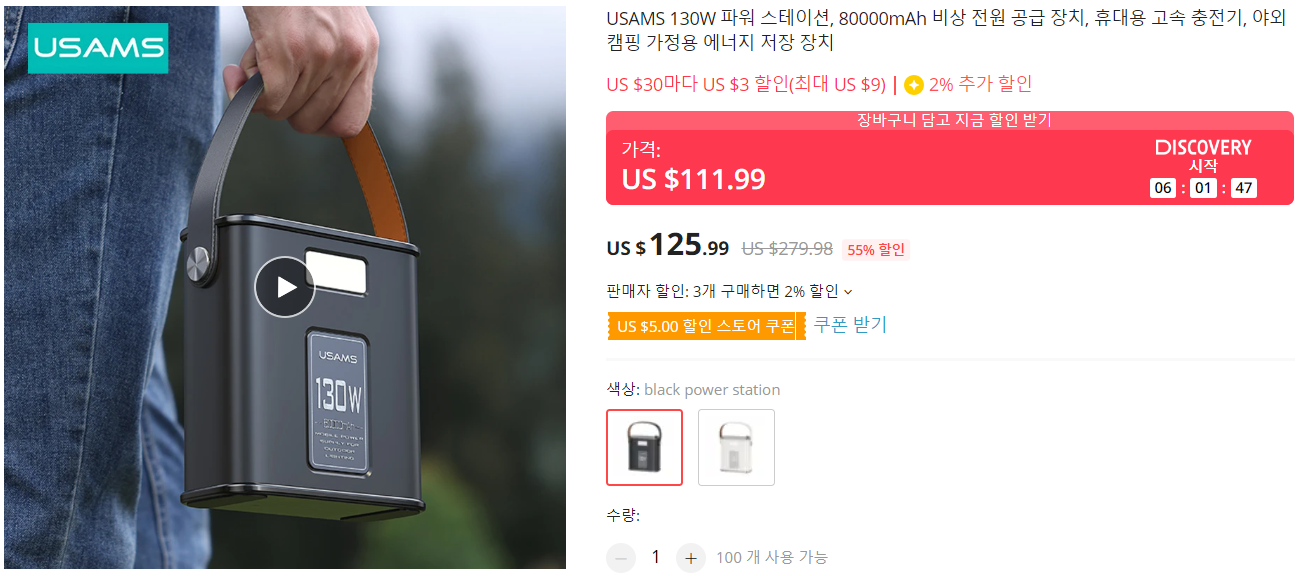 이제 스마트폰뿐만 아니라 노트북, 무선 선풍기, 조명, 스피커 등 USB 충전으로 갖춘 휴대용 전자제품들이 많다. 이렇다보니 이제 보조 배터리의 필요성도 점점 필수가 되어가고 있는데, 최근 USAMS에서 80,000mAh라는 대용량 보조 배터리 제품을 출시했다. 특히, 최대 130W까지 출력을 하기때문에 노트북 같은 제품들에도 적용하며, 야외에서 사용시 플래시 기능도 적용되어 있어서 유용하다. 이번 프로모션 상품으로 선정되었는데, 자체 할인까지 더해서 평소보다 훨씬 저렴하게 구입할 수 있으니 대용량 보조배터리 구입계획이었다면 놓치지 말자.