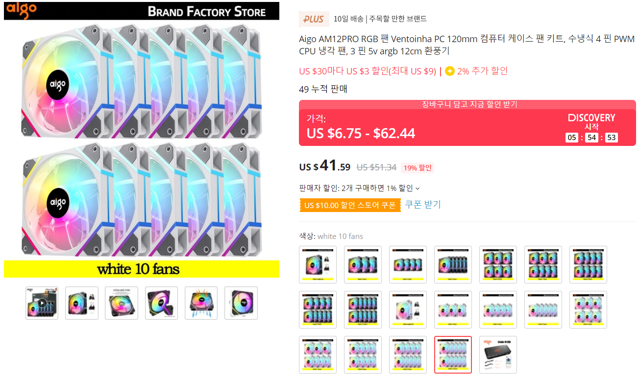 Aigo는 올해 알리익스프레스를 통해 한국에 가장 많이 알려진 PC브랜드 중 하나이다. 물론, 키보드 제품으로 유명해졌지만, Aigo는 종합 PC하드웨어 브랜드로 다양한 제품들을 갖추고 있다. 특히, 케이스 팬도 자주 출시하는데, 최근 새로운 120mm 팬 AM120 Pro를 출시하면서 이번 프로모션 상품으로도 선정을 했다. 최대 10개 팬 옵션 구입이 가능한데, 프로모션 때 구입하면 개당 1만원이 안되는 가격이니 PWM 4핀에 ARGB 케이스 팬 구입 계획이 있었다면 놓치지 말자.