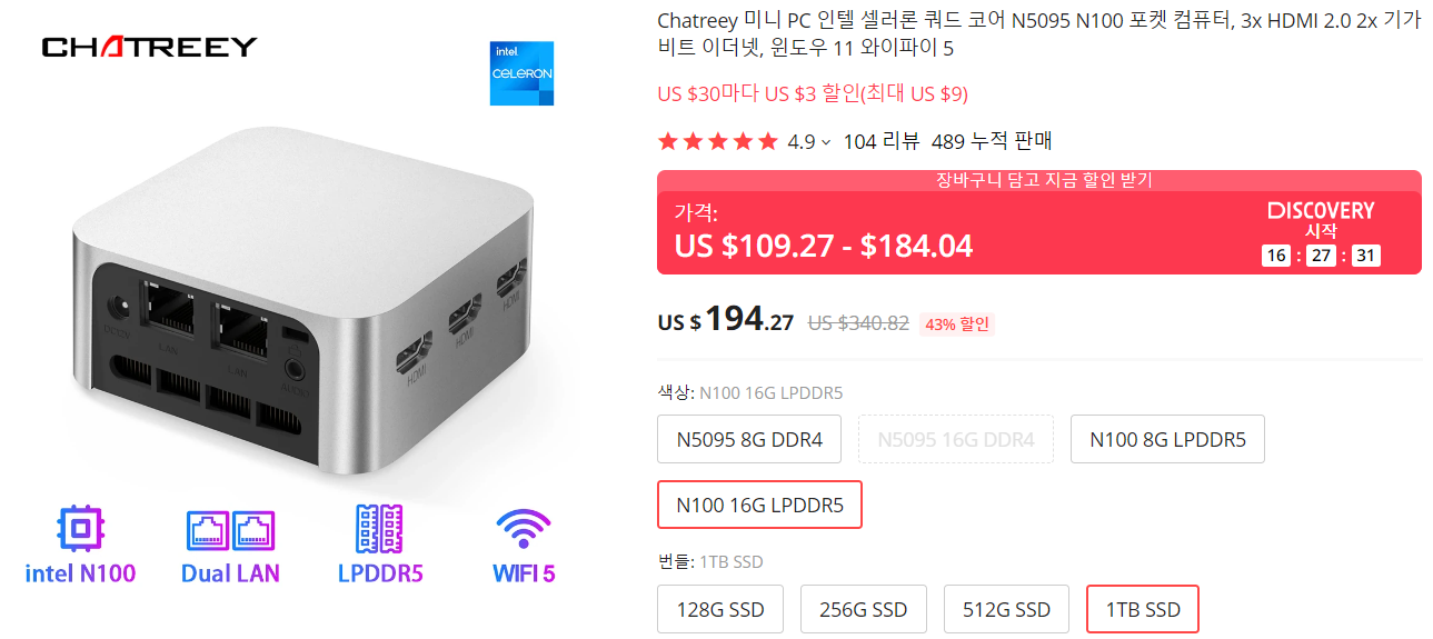 게임목적의 PC가 아니라면 혹은 데스크탑PC를 맞출 때 본체 크기가 부담된다면 미니PC를 한 번 쯤 생각해봤을거다. 요즘은 다중코어 CPU가 대중화되어서 미니PC도 이제 가성비를 많이 찾아볼 수 있게 되었는데, 가성비하면 Chatreey가 빠질 수 없다. 동급 제품들 중 좀 더 저렴하게 제품들이 나오는걸로 유명한데, 지난 달 6월 프르모션에서 큰 인기를 받았던 N100 미니PC가 이번에도 프로모션 제품에 선정되었다. 아직 구입하지 않았다면 이번 기회 놓치지 말자.