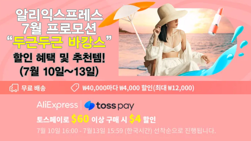 알리익스프레스 7월 프로모션 "두근두근 바캉스" 할인 코드 및 추천템