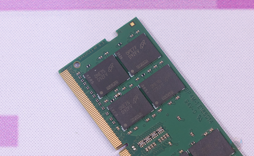 KingBank SODIMM DDR4 메모리를 살펴보면, 노트북/미니 PC(mini PC)에 사용되는 전형적인 SODIMM 메모리로 PCB 양쪽 모두 메모리 모듈이 적용되어 있으며, 한쪽에는 라벨 스티커를 부착해 놨는데, 스펙 사양을 확인해 보면, 3200MHz 클럭에 32GB 용량입니다. 이는 현재 SODIMM DDR4 메모리의 최고 사양이기도 하죠. 그리고, 메모리 모듈은 마이크론(Micron)사 제품이 사용되어 있습니다.
