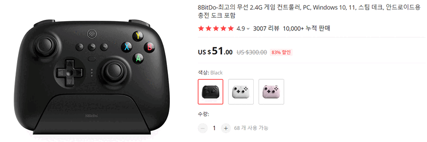 이미 한국 소비자들에게도 큰 인기를 받고 있는 8Bitdo의 얼티메이트 시리즈(Ultimate series) 컨트롤러 중 무선 2.4G 지원을 갖춘 얼티메이트 2.4G 무선 컨트롤러는 기본 유선과 함께 무선 2.4G 그리고 충전독(charging-dock)까지 기본으로 갖추고 있어서 전체 얼티메이트 시리즈 중 가장 가성비 모델이라 할 수 있습니다. 물론, 블루투스까지 지원하는 모델도 있지만, 가격이 상승하기 때문에 여러 가지 연결방식보다 유선과 무선 딱 2가지만 고려한다면 얼티메이트 2.4G 무선 컨트롤러가 가장 실용적이죠. 특히, 충전독을 함께 제공해주고 있어서 편리하게 거치해서 충전할 수 있고, 언제든지 쉽게 분리해 무선으로 사용할 수 있다는 점은 이 제품의 가장 큰 매력입니다. 또한, 3가지 색상으로 나와서 요즘 유행하는 데스크 인테리어에 맞춰서 선택할 수도 있죠. 여기에 버튼과 스틱, 트리거까지 컨트롤러 구성도 요즘 트렌드에 맞춰져 있기 때문에, 부족함이 없습니다. 유무선과 충전독까지 겸비한 가장 실용적인 게임 컨트롤러를 원했다면, 8Bitdo 얼티메이트 2.4G 무선 컨트롤러를 추천합니다.
