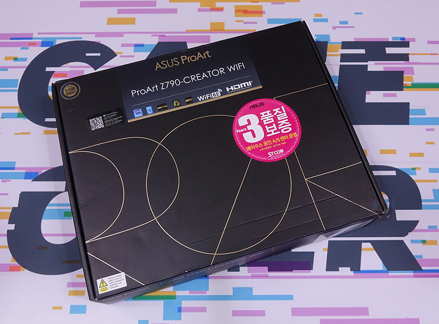 지난 번 ProArt B650-CREATOR 메인보드에서도 언급했듯이 ProArt는 전문성 콘셉트와 더불어 디자인을 심플하게 가져가는 콘셉트를 가지고 있습니다. 그래서, ProArt Z790-CREATOR WIFI 메인보드 역시 박스 디자인은 다른 ProArt 제품들과 동일합니다. 쉽게 말해, ASUS의 다른 라인업 메인보드 제품들은 박스 전면에 제품 이미지를 담고 있는데, ProArt는 제품 이미지 대신 로고만 담고 있죠. 그리고, 모델명과 함께 최신 프로세서, PCIe 5.0, DDR5 지원 등의 최신 규격과 국내에서 가장 오래 ASUS 메인보드 제품을 유통하고 있는 STCOM(에스티컴)의 3년 무상보증 스티커정도만 확인할 수 있습니다.