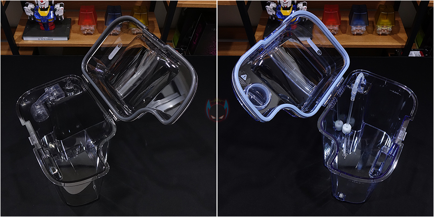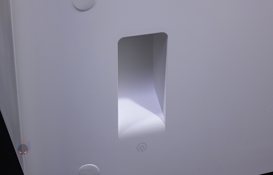 그리고, 베이스 스테이션 상단 커버를 열어보면 2개의 물통이 있는데, 왼쪽 검은색 통은 오수통, 오른쪽 파란색 통은 세척정수통으로 오수통 용량은 4L, 세척 정수통 용량은 4.5L입니다. 대용량이라 세척 정수통은 일주일이 한 번 정도 보충해 주면 되고, 그냥 물로 세척하는 것보다 좀 더 깨끗하게 걸레 세척을 하고 싶다면 별도로 판매되는 전용 세제를 함께 사용하면 됩니다. 두 물통 모두 물이 새지 않도록 고무 패킹처리도 되어 있죠. 베이스 스테이션 후면에는 특별한 것 없이 전원케이블이 연결되는 부분을 좀 더 가릴 수 있게 안쪽으로 디자인 처리 해놨습니다.