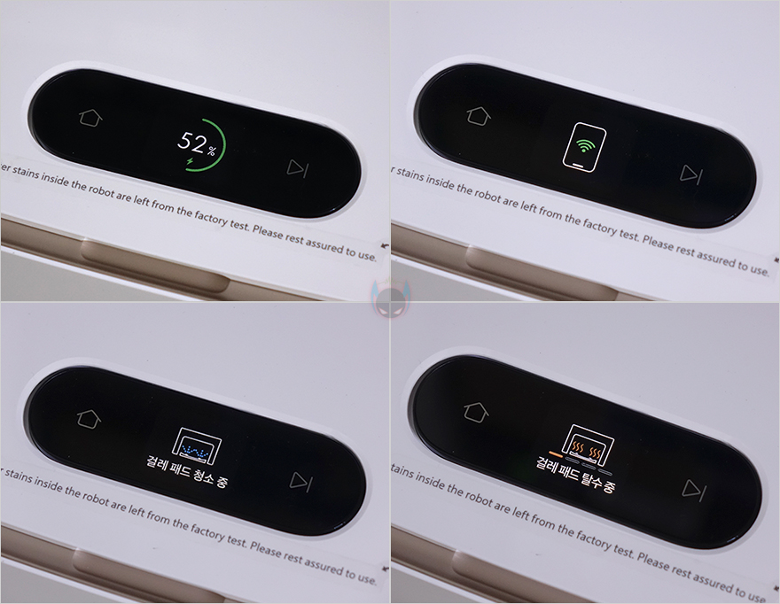 드리미(Dreame) W10 Pro 로봇청소기를 직접 사용해 보면, 앞서 언급했듯이 베이스 스테이션 상단에 적용된 디스플레이를 통해 작동상태를 확인할 수 있는데, 한국어 지원을 해주기 때문에 충전상태라든지 무선 연결, 물걸레 세척 및 건조 작동을 쉽게 알아볼 수 있습니다. 또한, 작동 시 안내 음성서비스 역시 한국어를 지원해주고 있는데, 실제 청소모드를 시작하면 물걸레세척을 약 2분가량 진행한 후 청소가 시작되며, 청소 마무리가 되면 안내 서비스에 따라 베이스 스테이션으로 돌아가 다시 물걸레 세척과 함께 충전 작동도 시작합니다. 안내에 따라 오수통도 열어서 비워주면 됩니다.