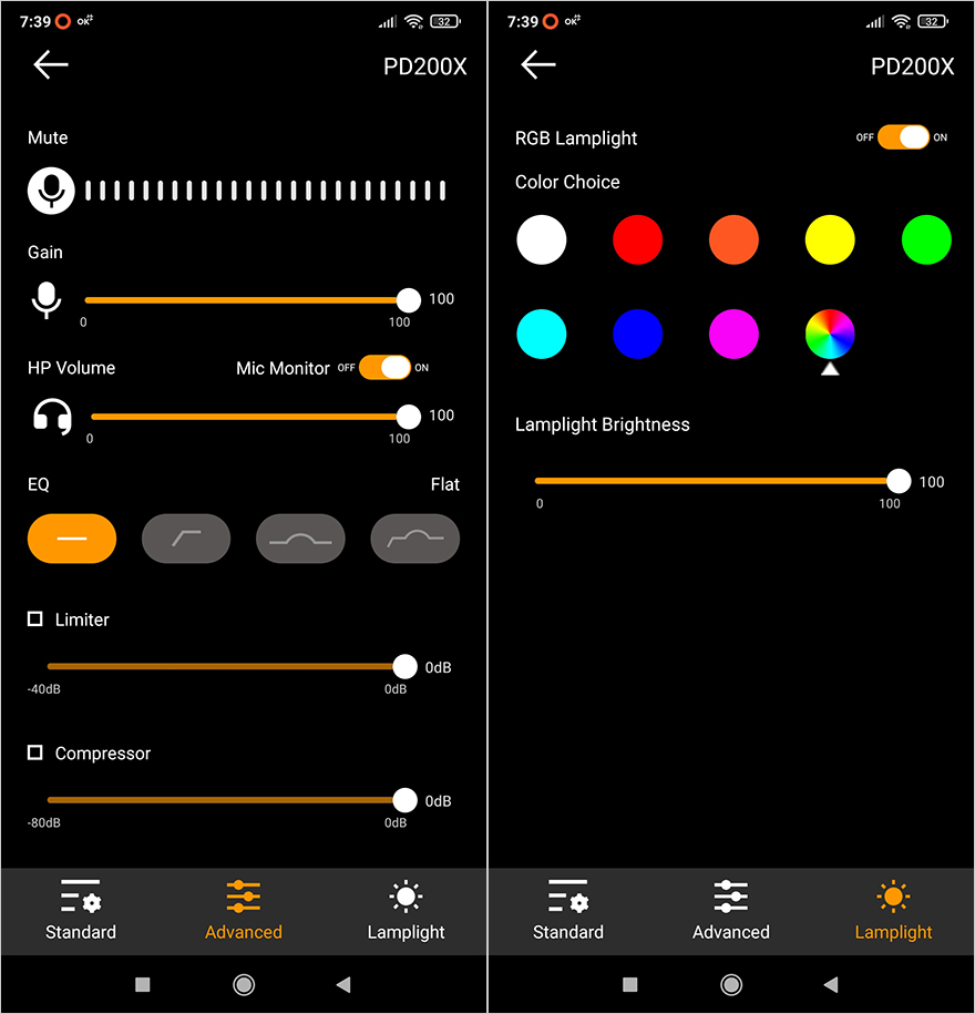 직접 PD200X 마이크를 사용해 보면, 단일 지향성 마이크답게 전면에서 수음이 가장 좋으며, 마이크 위치도 설명서대로 상단 부분에 입 위치를 맞추는 게 가장 선명합니다. 가격대비 마이크 품질은 일반 소비자들이 접했을 때 충분히 만족스럽다 할 수 있으며, 좀 더 음질에 신경을 쓰고 싶다면, 공용 프로그램인 Maono Link(https://www.maono.com/pages/maono-link-software)를 설치해서 사용하면 됩니다. PD400X 마이크 때부터 제공되기 시작한 Maono Link는 PC버전뿐만 아니라 모바일버전까지 사용할 수 있는데, 프로그램 설치 후 PD200X를 연결해 사용해 보면, 마이크 게인과 헤드폰 볼륨조절뿐만 아니라 톤(Tone) 변경, EQ, 리미터(Limiter), 컴프레서(Compressor) 기능까지 마이크에선 다룰 수 없었던 설정까지 다룰 수 있으며, RGB 조명효과도 프로그램에서 추가로 밝기조절을 할 수 있습니다.