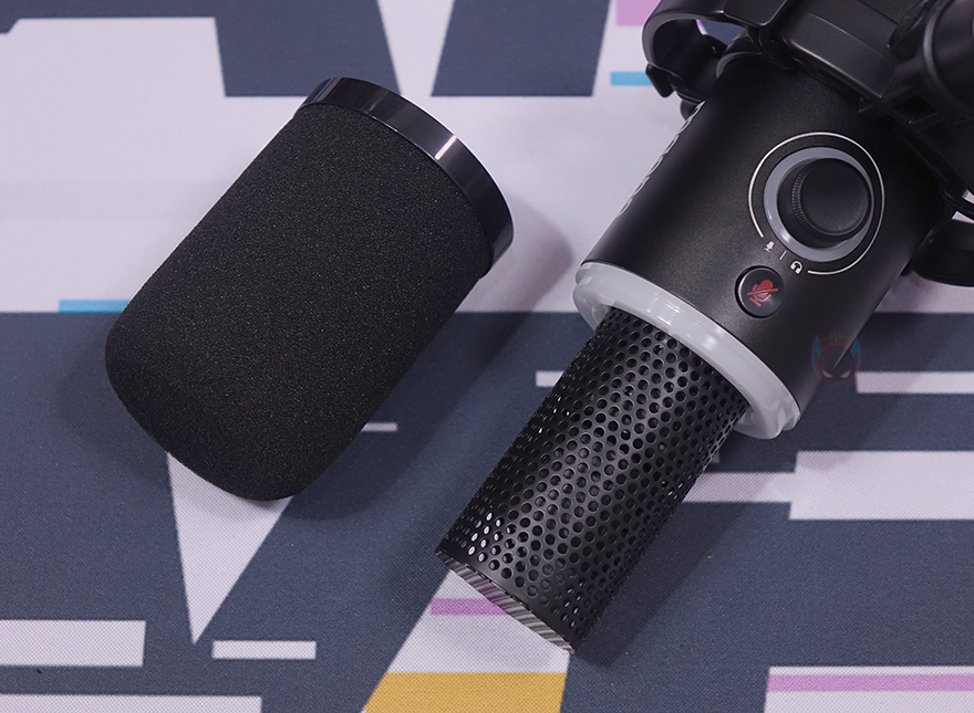 MAONO(마오노) PD200X 마이크를 살펴보면, 일단 색상은 블랙(Black)과 화이트(White) 2가지 색상으로 출시되었습니다. 그리고, 마이크에는 기본적으로 쇼크 마운트가 장착된 상태이죠. 쇼크 마운트까지 장착된 상태의 마이크 총 무게는 약 308g으로 USB/XLR 듀얼 모드 마이크 치고는 가벼운 편입니다. 그리고, 마이크의 캡슐(Capsule) 부분은 기본적으로 윈드 스크린(Wind Foam)이 장착된 상태인데, 끼우는 방식이라 쉽게 분리가 가능하고, 분리하면 내부 다이내믹 마이크 캡슐(Dynamic Mic Capsule)을 쉽게 확인할 수 있습니다. 그리고, 캡슐과 바디 경계 부분에는 RGB 조명효과를 볼 수 있게 디자인 처리 되어 있습니다.