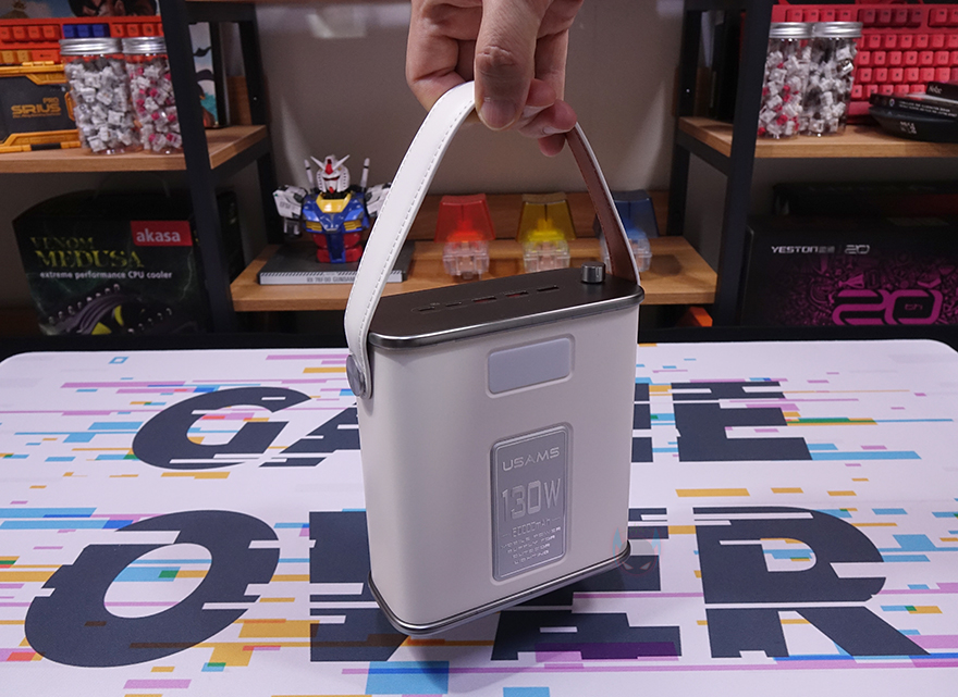 그럼, 본격적으로 USAMS(유삼스)의 대용량 보조배터리이자 파워스테이션 제품인 USAMS-ST를 살펴보는데, 앞서 잠깐 언급했듯이 색상은 화이트(White)와 블랙(Black) 2가지로 출시되었습니다. 디자인은 마치 가방(Bag) 같은 형태로 아무래도 대용량 배터리 제품이기 때문에 손잡이가 필수라 할 수 있죠. 물론, 무게는 노트북 무게정도의 약 1.9kg 정도밖에 되지 않아 대용량 배터리 제품치고는 가벼운 편입니다. 물론, 무겁다고 생각할 수도 있겠지만, 비슷한 용량의 AC전력이 있는 300W 파워스테이션 제품들이 4~5kg 무게를 가진 걸 감안하면 USAMS-ST는 훨씬 가벼운 거죠.