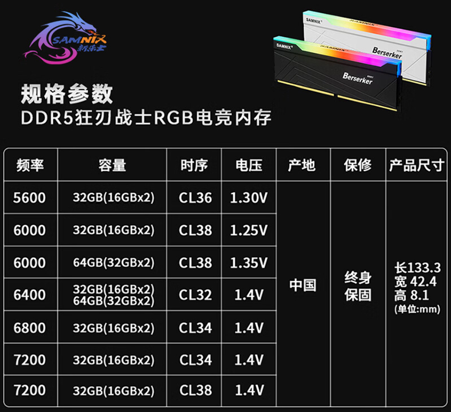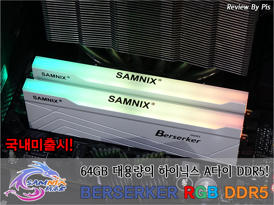 이제 인텔(Intel)과 AMD 모두 최신 CPU로 조립 PC를 맞추면 메모리는 DDR5가 사용되는 시대입니다. 특히, 올해 DDR5 시장에서 현재 가장 핫한 제품이라면 바로, SK 하이닉스 A다이(Hynix A-Die) 칩을 사용한 제품이죠. 그 이유는 오버클럭 수율이 상당히 높고 잘 적용되기 때문입니다. 그래서, 인텔 XMP나 AMD EXPO 프로파일 즉 기본 오버클럭이 적용된 제품들 중 SK 하이닉스 A다이 칩이 적용된 제품을 찾는 소비자들이 늘어나고 있는데, 대부분의 메모리 업체들이 대놓고 SK 하이닉스 A다이 칩이 적용되었다고 표기해놓지 않습니다. 하지만, 예외인 경우가 있는데 바로 중국시장 브랜드의 메모리 업체들입니다. 이미 앞서 Netac, KingBank 같은 브랜드도 만나봤지만, 상품 소개를 할 때 하이닉스 A다이 칩이 사용되었다고 대놓고 표기하죠. 오늘 만나볼 브랜드의 제품 역시 SK 하이닉스 A다이 칩이 적용되었다고 대놓고 소개하는 제품입니다. 바로, SAMNIX(http://www.samnix.com.cn/)의 Berserker(버서커) RGB DDR5죠. 그럼, SAMNIX(삼닉스)의 Berserker RGB DDR5 메모리를 한 번 만나보도록 하겠습니다.