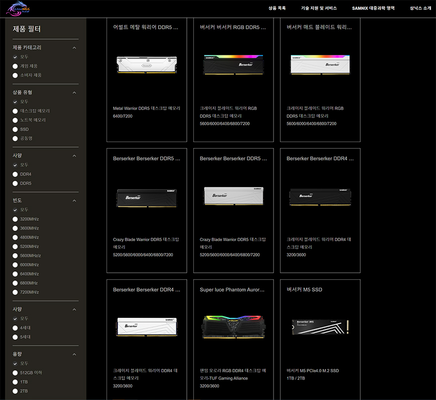 제품을 살펴보기 전에 아직 국내시장에 진출하지 않아 생소할 수 있는 SAMNIX(삼닉스)에 대해서 잠깐 소개하자면, 2018년에 설립된 SAMNIX는 주력 제품은 메모리(RAM)이며, 최근에는 SSD 첫 제품으로 Berserker M5 모델도 출시를 했습니다. 그리고, Berserker series는 DDR4부터 이어진 SAMNIX의 메인 제품 라인업이기도 합니다. 그래서, DDR5의 첫 RGB 메모리도 Berserker 제품으로 출시한 거죠.