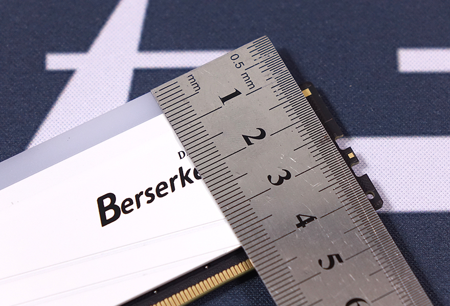 그럼, 본격적으로 SAMNIX(삼닉스)의 Berserker RGB DDR5 메모리를 살펴보는데, 시작에서 언급했듯이 Berserker RGB DDR5 메모리는 방열판 색상에 따라 화이트(White)와 블랙(Black) 2가지로 나뉩니다. 그리고, 방열판 높이는 약 37mm로 CPU쿨러와 간섭이 적도록 했죠. 그리고, 방열판 한쪽에는 다른 메모리 제품들처럼 사양 라벨(spec label) 스티커가 부착되어 있는데, 리뷰에 사용된 모델은 6400MHz 64GB(32GBx2) 모델로 현재 Berserker RGB DDR5 메모리 중에서는 유일하게 64GB 제품으로 판매되고 있습니다. 참고로, 뒤에서 다시 언급하겠지만, Berserker RGB DDR5 메모리는 SK 하이닉스 M다이(M-Die)와 A다이(A-Die) 2가지가 사용되는데, A다이(A-Die)는 6400MHz 클럭이상부터 적용됩니다.