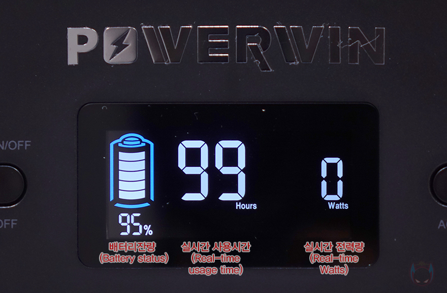 직접, POWERWIN PPS320 파워뱅크(Power Station)를 사용해보면, 조작법은 의외로 간단합니다. 디스플레이 왼쪽에 위치한 전원(Power)/DC 겸용 버튼을 3초 이상 누르고 있으면 비프음과 함께 전원이 켜지고, 디스플레이(Display)도 켜지면서 화면 왼쪽에는 배터리 용량, 바로 옆에는 사용 시간, 그리고 화면 맨 오른쪽에는 입출력 상태를 보여주죠. 전원이 켜진 상태에서 USB 포트나 AC 콘센트에 충전 및 전원케이블이 연결되면, 바로 연결상태를 표시해 주고, 실시간으로 사용 시간과 출력 상태를 보여줍니다. 참고로 AC 콘센트 같은 기능을 사용할 때는 AC 전원 버튼을 켜줘야 합니다. 그리고, 반대로 파워뱅크를 충전할 때도 AC 어댑터나 USB PD 충전이 연결되면 실시간으로 보여주죠.