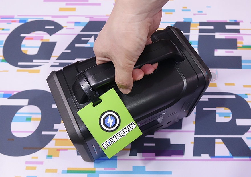 그럼, POWERWIN PPS320 파워뱅크(Power Station)를 살펴보는데, 색상은 양쪽 측면에 메탈 그레이(Metal Gray) 그리고 나머지는 블랙(Black) 색상으로 적용되었으며, 크기는 130x202x230mm으로 작은 편입니다. 흔히 테이블로 올려놓는 블루투스 스피커와 비슷하죠. 무게는 4.1kg 수준으로 묵직하지만, 일반 성인 여성이 운동할 때는 드는 덤벨 무게 수준이라 여성이 들기에도 큰 불편함은 없습니다. 또한, 상단에는 이동시 편의를 위한 손잡이도 있는데, 크기가 작다 보니 성인 남성보다는 성인 여성 손에 좀 더 그립이 편하죠.
