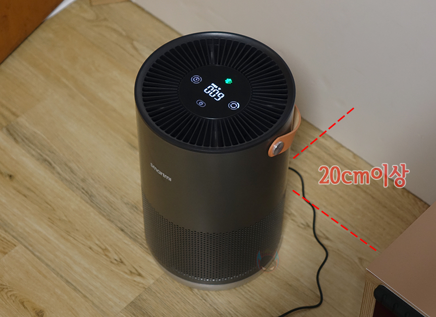 Smartmi Link과 연동이 되면, 어플에선 터치 디스플레이에서 설정할 수 있었던 기능들을 어플에서도 모두 동일하게 다룰 수 있으며, 추가로 어플에선 디스플레이 On/Off, 터치할 때마다 발생하는 비프음 알림 On/Off, 그리고 아이가 만지는 것을 보호해 주는 보호기능 On/Off를 추가로 설정할 수 있습니다. 참고로, 아이 보호 기능을 켜면, 어플로만 전원 On/Off 할 수 있습니다. 또한, 어플에선 사용 중인 필터의 상태도 확인할 수 있고, 대기질도 일/주/월 단위로 기록해 줍니다. 끝으로, 다른 공기청정기 제품들처럼 P1 공기청정기 역시 벽에 붙여두고 사용하는 것보다 약 20cm 거리를 두고 사용하는 것이 효율적입니다.