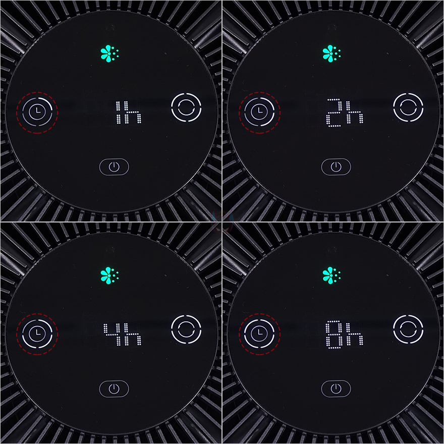 직접, 스마트미(Smartmi) P1 공기청정기를 사용해 보면, 앞서 디자인 부분에서 잠깐 확인했지만 먼저 나왔던 거실용 공기청정기 모델과 디자인이 비슷하기 때문에, 조작법도 비슷합니다. 상단에 위치한 터치방식의 디스플레이에서 모든 기능을 다룰 수 있죠. 전원 표시를 터치하면 전원 On/Off를 할 수 있으며, 화면이 켜지면 정가운데에 기본 화면으로 PM2.5 단계를 보여주고, 화면 맨 위에는 공기오염상태, 숫자 왼쪽에는 타이머(Timer), 숫자 오른쪽에는 모드(Mode) 터치 버튼이 배치되어 있습니다. 모드는 한 번씩 터치할 때마다 수면모드(Sleep)→최적모드(Normal)→사용자모드(Custom)→자동모드(Auto)순으로 전환되며, 사용자모드는 어플에서 설정을 다룰 수 있습니다. 그리고, 타이머 역시 한 번씩 터치할때마다 1시간→2시간→4시간→8시간→Off로 설정됩니다.