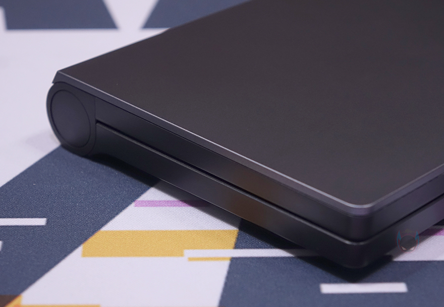 케이스 밑바닥은 블랙(Black) 색상에 모서리 부근에 돌기로 받침대 디자인을 적용했으며, 모서리 한쪽에는 모델명과 함께 배터리 표기를 해놨는데, 뒤에서 확인하겠지만, 정밀 드라이버 키트 프로에는 무선 전동드라이버가 수납되기 때문에, 케이스에 수납되는 무선 전동드라이버의 배터리 용량을 의미합니다. 또한, 케이스가 닫힌 상태의 두께는 26.5mm이며, 케이스가 열리는 방향 기준으로 힌지(Hinge) 오른쪽 측면에는 방금 언급했던 무선 전동드라이버를 충전해 주는 제공되는 USB 충전케이블과 연결되는 USB Type-C 포트가 배치되어 있습니다.
