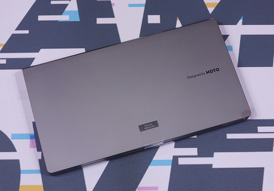 HOTO(호토) 정밀 드라이버 키트 프로 케이스(Case)부터 살펴보면, 케이스 크기는 215.5x121.8mm로 요즘 보편적인 크기의 스마트폰과 태블릿 PC와 비교해보면 중간정도 되는 크기죠. 도구가 모두 들어있는 상태의 무게는 약 650g으로 태블릿 PC보다 조금 무거운 수준이지만, 휴대하기에는 부담스럽지 않습니다. 그리고, 케이스 상판 색상은 그레이(Gray)이며, 자사 제품들에 꼭 빠지지 않는 'Designed by HOTO'는 오른쪽에 새겨놨습니다. 역시 전반적으로 심플한 디자인입니다.