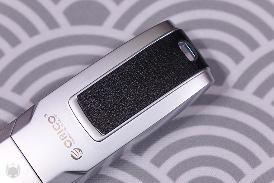 방금 언급했듯이 UFSD USB 케이스의 전체 재질은 금속이면서, 블랙색상 부분은 인조가죽을 적용하고 있습니다. 쉽게 말해, 금속과 가죽 2가지 혼합재질로 고급스러움을 살리고 있는 거죠. 물론, 여기에 전체적인 디자인 콘셉트를 자동차(Car)로 모티브 했습니다. 그리고, 가죽 부분 끝부분에는 앞서 구성품에서 확인한 스트랩 줄을 사용할 수 있게 구멍처리가 있으며, 스트랩 줄을 사용해서 휴대나 보관에 좀 더 용이하게 사용할 수 있겠습니다.