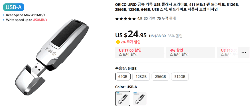 크기는 USB 메모리만 하면서 속도는 SATA 방식의 SSD 수준급인 오리코(Orico) UFSD USB는 새로운 휴대용 USB 메모리 강자의 등장이라고 할 수 있습니다. 물론, 정확히는 USB 메모리가 아닌 UFS(Universal Flash Storage) 방식에 USB 인터페이스를 적용한 메모리카드지만, USB 인터페이스를 적용함으로써 USB 메모리와 비슷한 크기에 USB 메모리의 단점인 속도를 완전히 보완해주고 있어서, 사실상 USB 메모리를 대체한다고 할 수 있죠. 여기에 금속재질의 케이스라 외부 충격도 걱정할 게 없고, USB 인터페이스도 Type-A와 Type-C 2가지로 출시되어서 사용자가 원하는 취향으로 선택할 수 있어서 좋습니다. 또한, USB 메모리만큼이나 최대 512GB 용량까지 있어서 USB 메모리는 자주 사용하는 소비자에게 늘 속도 빠른 USB 메모리가 필요하다고 느끼고 있었다면, 오리코 UFSD USB를 추천합니다.