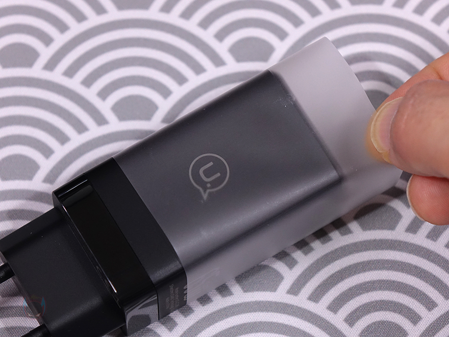 그럼, 유삼스(USAMS) 65W 고속충전기 US-CC180 모델을 살펴보는데, 앞에서 잠깐 언급했듯이 이 모델은 총 4가지 색상으로 출시되었습니다. 기본 색상이라 할 수 있는 블랙(Black)과 화이트(White)외에 그라데이션 컬러로 블루(Blue)와 핑크(Pink) 색상이 있죠. 기본적으로 블랙과 화이트이 흔하기 때문에 식상할 수 있는 소비자를 위해 추가 컬러 색상을 적용한거라 볼 수 있습니다. 그리고, 100W 고속충전기와 크기를 비교해보면, 확실히 작다라는걸 알 수 있는데, 전체 길이가 10cm정도 밖에 되지않으며, 무게도 약 2배정도 차이나서 확실히 휴대성에는 65W 충전기가 더 편하다라는걸 알 수 있습니다.