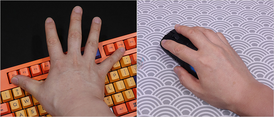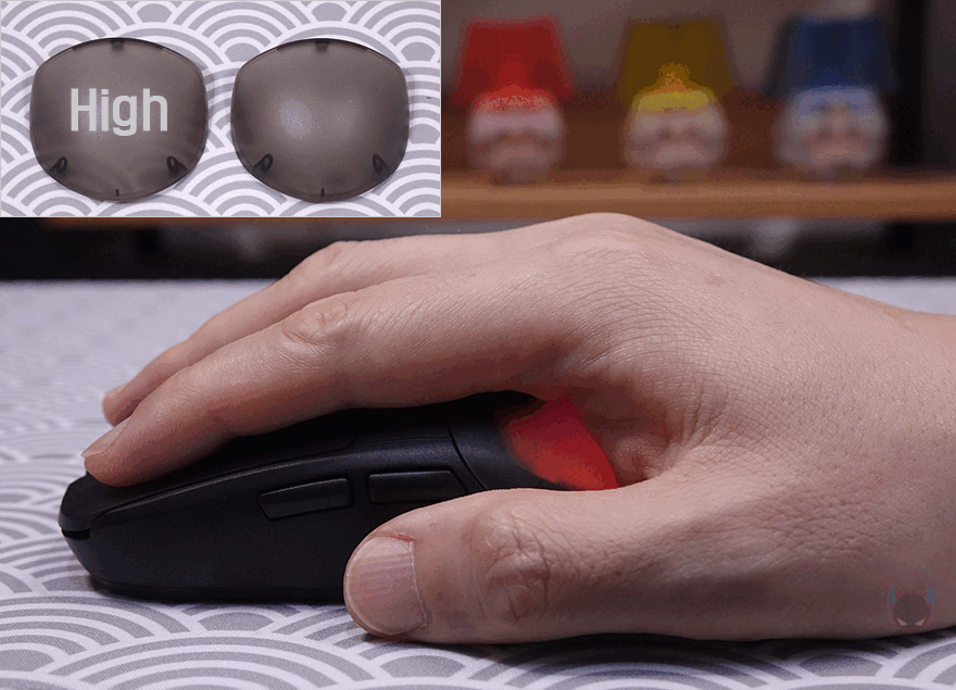 타이탄 GC 무선 마우스 그립 같은경우에는 앞서 크기에서 잠깐 언급했지만 국내 브랜드 제품인 만큼 한국 사람의 손에 잘 맞는 크기를 가졌습니다. 실제 필자의 경우 키보드 F숫자키 기준으로 F10 손크기를 가졌는데, 기본 그립인 팜-그립부터 클로와 핑거-그립 사용하기에 불편함이 없었습니다. 또한, 큰 차이는 아니지만, 팜커버 높낮이에 따라서도 약간의 그립 이동이 있습니다. 그리고, 앞서 확인한 +자 드라이버를 사용한 클릭 압력조절 역시 반발력 차이가 있는데, 큰 차이는 아니지만 클릭했을 때 체감을 느낄 수 있으며, 조절 범위는 +자 드라이버로 2바퀴 정도입니다. 반발력을 높이는 시계방향으로 2바퀴 정도 돌리면 나사가 꽉 조여지는 게 느껴지고, 반대로 시계반대방향으로 2바퀴 정도 돌리면 '틱' 소리와 함께 걸리는 느낌이 있습니다. 스위치는 앞서 언급했듯이 제공되는 스위치들마다 압력과 소음차이가 있기 때문에 사용자가 취향으로 선택하면 됩니다. 또한, 그립 접지력을 높이고 싶다면 제공되는 그립 패드를 부착해서 사용하면 되죠.
