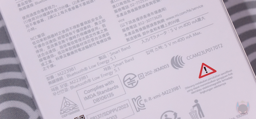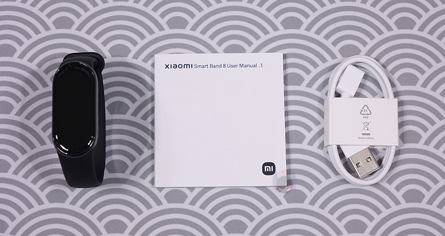 박스 후면에는 한국어를 포함해 각 나라별 언어로 간략하게 제품 사양을 표기해 놨으며, 개봉 부분에는 씰을 부착해 놨고, 박스를 열어보면 비닐 포장된 미밴드 8 스마트밴드를 비롯해 충전케이블과 설명서가 분리된 수납공간에 포장된 것을 확인할 수 있습니다. 제품구성은 방금 언급했듯이 미밴드8 스마트밴드, 제품설명서, 충전케이블로 간단하게 이루어져 있죠.