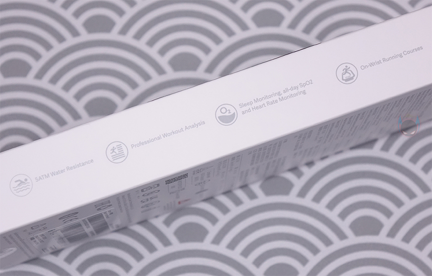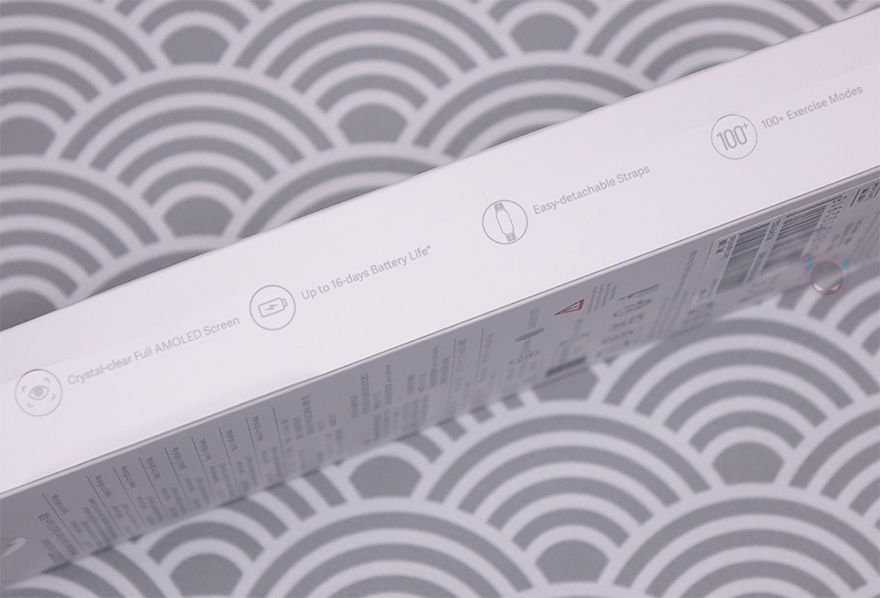 제품 패키지는 박스형태로 디자인은 기존의 미밴드 시리즈 제품들과 크게 다르지 않습니다. 전면에는 심플하게 제품 이미지와 제품명만 담고 있죠. 미밴드 시리즈는 큰 디자인 변화없이 기능적인 부분은 계속 개선시키면서 나왔기 때문에, 제품 이미지만 봤을 때는 역시 디자인에 큰 변화가 없다는 걸 짐작할 수 있습니다. 하지만, 변화가 좀 있는데, 이 부분은 뒤에서 다시 언급하도록 하고, 박스 측면에는 제품의 주요 특징으로 아몰레드(AMOLED) 디스플레이, 최대 16일 사용, 손쉬운 분리의 스트랩, 100가지 이상의 운동모드, 50미터(5 ATM) 방수, 전문적인 운동분석, 수면 모니터링/24시간 심박수 및 혈액산소포화도(SpO2) 모니터링, 달리기 코스를 표기해 놨습니다.