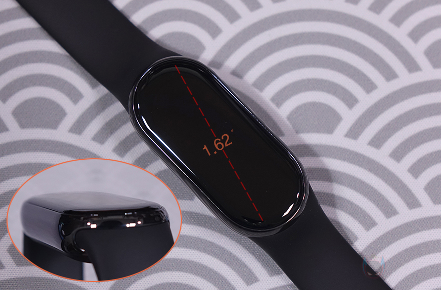 그럼, 본격적으로 샤오미 미밴드 8(Xiaomi Mi Band8) 스마트밴드를 살펴보는데, 앞서 잠깐 언급했듯이 외형적인 변화는 크게 없습니다. 그리고, 전체 무게는 약 25g이죠. 하지만, 디자인에 큰 변화가 없어도 새롭게 업그레이드된 부분이 있는데, 바로 프레임입니다. 정확히는 측면 프레임으로 광택처리의 메탈릭 프레임으로, 이 부분을 통해 미밴드 8은 그래파이트 블랙(Black)과 샴페인 골드(Gold) 2가지로 출시되었습니다. 그리고, 뒤에서 다시 확인하겠지만, 스트랩 부분도 변화가 생겼죠. 화면은 아몰레드(AMOLED) 디스플레이로 화면크기는 기존 미밴드 7과 동일하게 1.62인치 크기이며, 스크래치 최소화를 위해 2.5D 강화유리를 이번에도 적용했습니다.