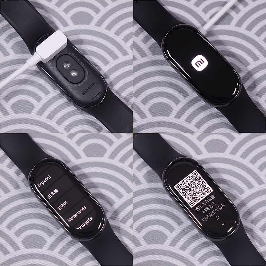 직접, 샤오미 미밴드 8(Mi Band8) 스마트밴드를 사용해보면, 이전 세대 제품들과 마찬가지로 따로 전원버튼이 있는것 아니기때문에 충전케이블은 연결하면 전원이 켜집니다. 그리고, 처음 사용할때도 이전 세대 제품들처럼 언어설정을 먼저 하는데 글로벌버전이기때문에 한국어가 당연히 포함되어있고, 언어 선택후에는 샤오미 웨어러블 어플인 미-피트니스(Mi Fitness)을 다운로드 받을 수 있게 QR코드를 보여줍니다. 미-피트니스 어플을 설치한 후, 어플에서 장치추가를 진행하면 미밴드8 인식 후 안내에 따라 연결 진행을 하고 마치면 됩니다.