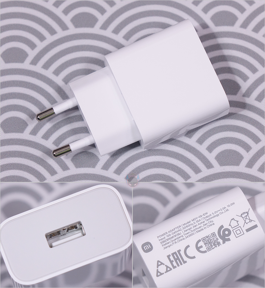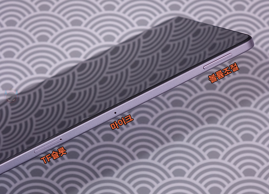 전면 카메라 위치 기준으로 카메라 윗부분 측면 프레임에는 볼륨조절(Volume control) 버튼과 마이크, TF카드 슬롯이 배치되어있으며, 제공되는 카드슬롯 핀으로 슬롯을 빼내보면, TF카드 1개를 장착할 수 있는데, 최대 1TB 용량까지 지원합니다. 그리고, 좌우 양쪽 측면에는 앞서 주요 특징 표기에서 언급했던 돌비 애트모스 지원의 쿼드 스피커가 양쪽에 각각 2개씩 나뉘어서 내장되어 있으며, 왼쪽 측면에는 전원버튼, 오른쪽 측면에는 충전케이블과 연결되는 USB Type-C 포트와 3.5mm 이어폰-잭이 적용되어 있죠. 끝으로, 기본 제공되는 충전어댑터는 220V 플러그에 USB Type-A 포트를 갖췄고, 충전 전력은 최대 10W입니다. 개인적으로 이 제품에 가장 아쉬운 부분이기도 합니다. 5년 전에 나온 미패드 4 플러스와 동일한 충전속도이기때문이죠. 그리고, 충전케이블은 약 1m 길이에 충전어댑터에 맞춰 USB Type-A to C 인터페이스를 가지고 있죠.