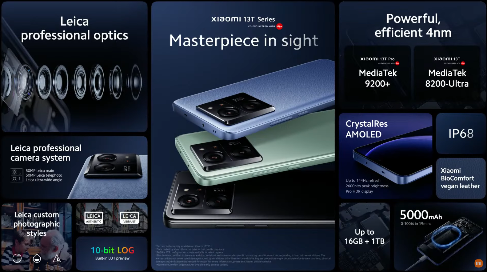 먼저 샤오미 13T 시리즈 스마트폰 같은경우에는 기본 모델인 13T와 프로모델 13T Pro 2가지로 출시되었으며, 색상은 3가지이고, 기본 모델의 APU는 미디어텍 디멘시티 8200 울트라, 프로모델은 디멘시티 9200플러스를 탑재했다. 디스플레이는 6.67인치 아몰레드, 카메라는 라이카렌즈 5천만화소 메인과 광학, 1200만화소 초광각 트리플이며, IP68등급 방수방진에 기본 모델 67W 고속충전, 프로모델 120W 고속충전을 지원한다. 메모리와 저장공간은 12GB+256GB 옵션부터 시작하면, 알리익스프레스 샤오미 브랜드 데이 행사에선 190달러 할인코드를 제공해준다.