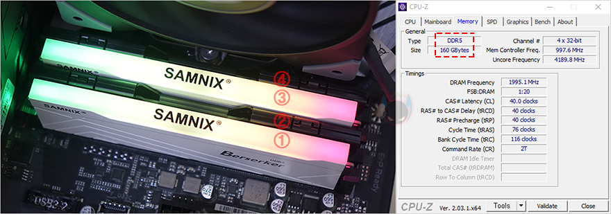 또한, B760M 어로스 엘리트 메인보드 같은 경우 출시당시에는 최대 메모리용량 지원이 128GB 까지였는데, 최근 DDR5 메모리 단일용량으로 48GB까지 나오면서, 최대 192GB 용량까지 지원이 늘었으며, 이를 지원하는 바이오스도 이미 나와서 적용되었습니다. 실제로 단일 48GB 메모리 2개 듀얼 채널로 장착해 본 결과, 96GB로 인식되는 걸 확인할 수 있었고, 필자가 가지고 있는 단일 32GB 2개까지 모두 장착해 160GB 용량까지 적용되는 걸 확인할 수 있었습니다.