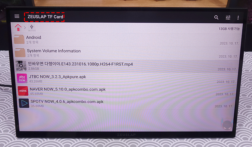 이 외에도 앞서 후면에서 확인했듯이 TF카드 슬롯과 TF카드를 기본 제공해주고 있어서, 외부 파일을 저장해서 실행할 수 있습니다. 쉽게 말해, MP4 파일 같은 동영상파일을 저장해서 실행하거나, 구글 TV 자체의 탑재된 구글 스토어에 없는 외부 어플 APK를 담아서 파일 관리자 같은 어플에서 실행하면 설치할 수 있다는 거죠. 물론, Z18TV PRO의 구글 TV OS 역시 스마트 TV의 구글 TV OS랑 동일하기 때문에 모든 외부 어플이 정상적으로 설치/실행되는 건 아닙니다. 따라서, 사용자가 사용하고 싶은 외부 어플은 직접 설치/실행 확인을 해봐야 합니다.