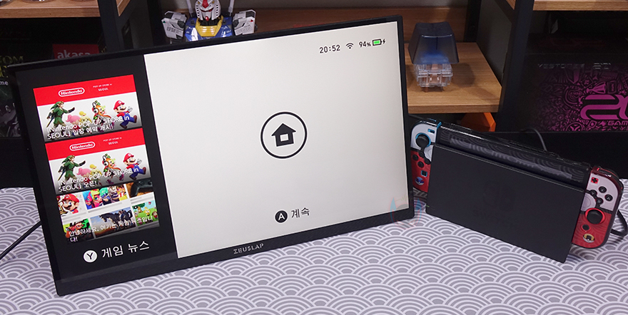 그리고, 제우스랩은 지금까지 대부분 자사 포터블 모니터 제품들을 스마트폰과 닌텐도스위치 같은 콘솔게임기 연결지원도 갖추고 나왔기 때문에, 이번 Z18TV PRO 포터블 스마트모니터 역시 삼성 스마트폰과 연결하면 삼성 덱스(Samsung Dex)가 자동 실행되며, 이때 케이블은 USB Type-C to C 케이블로 스마트폰과 모니터 후면 오른쪽에 배치된 USB Type-C 포트 2개 중 가운데 위치한 포트에 연결해 주면 됩니다. 그리고, 닌텐도스위치 역시 전용 충전독에 도킹한 상태에서 충전독에 있는 HDMI 포트를 제공되는 HDMI to mini HDMI 케이블을 사용해서 Z18TV PRO 포터블 스마트모니터와 연결하면 외부 모니터로 쉽게 전환이 되죠. 특히, 닌텐도스위치와 연결해서 사용할 때는 후면 USB Type-C 포트 첫 번째인 전원포트와도 연결해 두기 때문에, 충전독이 대기모드로 바뀌면 자동으로 모니터 화면이 구글 TV모드로 전환되어서 두 기능을 전환해서 사용하기 편합니다. 단, 기존 제품들처럼 Z18TV PRO도 모바일기기 연결에선 터치기능이 작동하고, 닌텐도스위치와 연결했을 때는 터치기능은 작동하지 않습니다.
