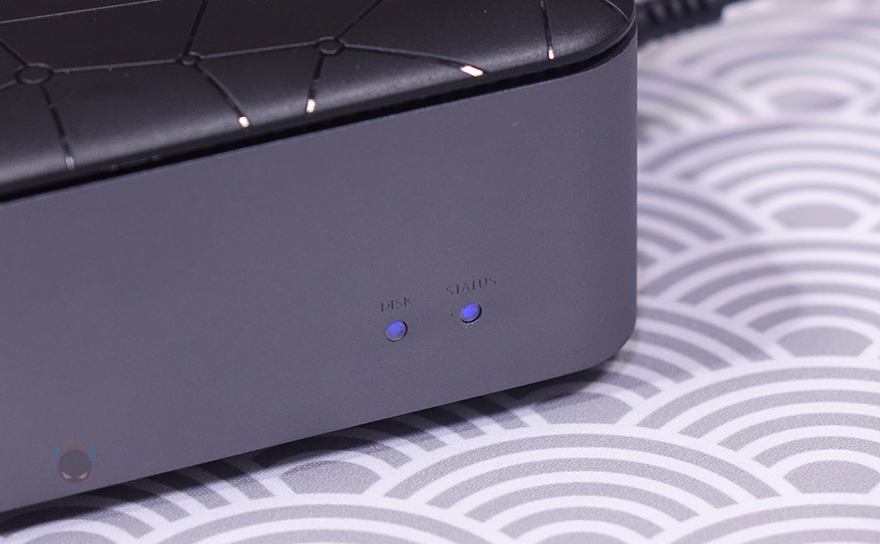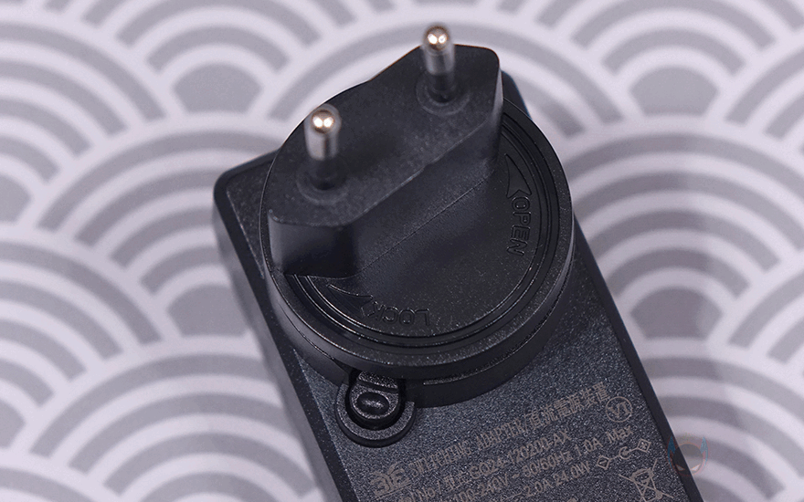 끝으로, 제공되는 케이블들을 살펴보면, 외장 HDD 모드 이용 시 사용되는 USB 케이블은 약 1m 길이에 Type-A to C 인터페이스를 가졌으며, LAN 케이블은 CAT 6 규격에 역시 1m 길이를 가졌고, 전원어댑터는 플러그(Plug) 교체방식으로 한국 소비자들은 EU 플러그 옵션을 선택하면 바로 220V에 사용할 수 있습니다. 플러그 분리/장착은 표기된 방향대로 움직이면 됩니다.