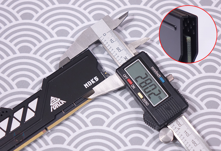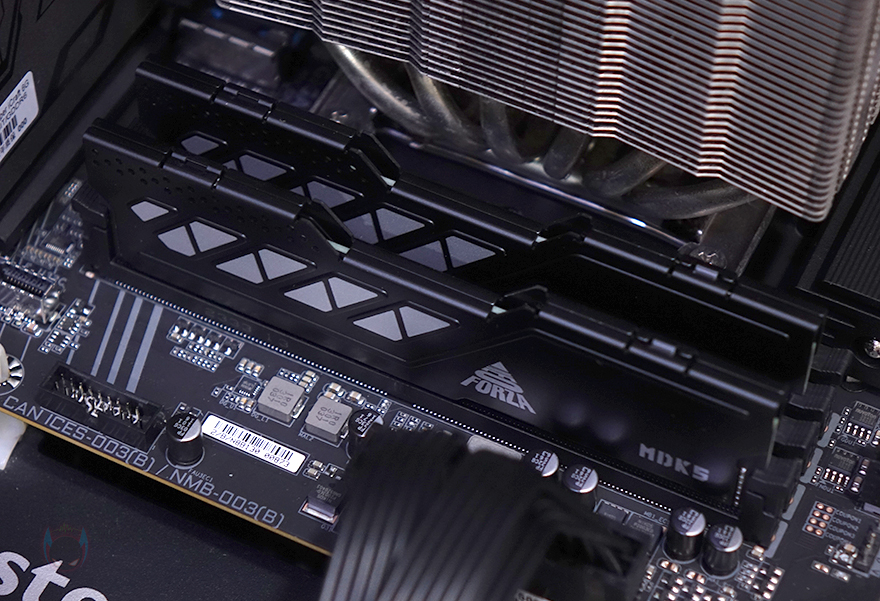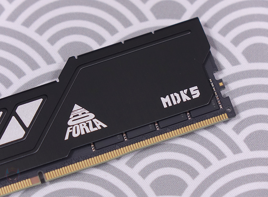 MDK5 DDR5 6000MHz 96GB Kit 메모리의 방열판을 살펴보면, 블랙 색상 바탕에 방열판 높이는 약 28mm로 30mm가 넘지 않기 때문에 타워형 CPU 쿨러와의 간섭 발생은 거의 없다고 볼 수 있습니다. 또한, 방열판 한쪽에는 윗부분에 타공망(Mesh) 디자인을 적용했으며, 반대쪽에는 Neo Forza 로고(Logo)와 MDK5 표기를 해놨죠. 물론, 방열판 반대편도 디자인은 동일하며 라벨 스티커에는 메모리 사양을 확인할 수 있는데, 단일(Single)로 48GB, 6000MHz 클럭, CL40 타이밍값을 확인할 수 있죠. Non-RGB 모델이기 때문에 방열판 상단에는 특별한 디자인이 없습니다.