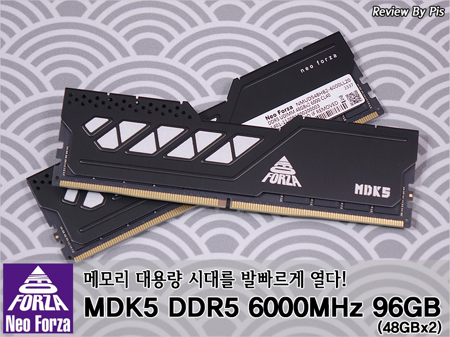 DDR4 시대까지만 해도 데스크톱 PC의 메인보드에서 최대 메모리용량 지원은 128GB였습니다. 물론, DDR5 시대가 열렸던 초반까지도 이 최대 용량은 동일했죠. 하지만, 작년부터 인텔(Intel)은 DDR5 지원의 메인보드 최대 메모리용량을 192GB로 늘렸으며, AMD 역시 올해부터 DDR5 지원의 메인보드에 최대 메모리 용량을 192GB까지 늘렸습니다. 그래서, 메모리 업체들도 그동안 128GB 용량에 맞춰 8GB/16GB/32GB/64GB 4가지 모듈로 생산되다가 192GB 지원이 되면서 최근 24GB/48GB 모듈이 추가되었습니다. 대만의 메모리&저장장치 전문업체 Goldkey의 브랜드 Neo Forza(http://www.neoforza.com) 역시 이번에 기존 MDK5 DDR5 라인업에 96GB(48GBx2) 듀얼 키트 모델이 추가되었죠. 그래서, 이번 시간에는 Neo Forza(네오포르자)의 MDK5 DDR5 6000MHz 96GB Kit 메모리를 한 번 살펴보도록 하겠습니다.