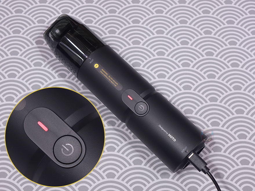 그럼, 직접 HOTO(호토) 압축 공기 캡슐 헨드헬드 진공 청소기(Compressed Air Capsule)를 사용해보면, 사용법은 간단합니다. 전원버튼은 1.5초이상 누르고 있으면 전원을 켤 수 있고, 다시 1.5초이상 누르면 전원을 끌 수 있습니다. 그리고, 전원이 켜지면 버튼 바로 위에 배치된 LED가 화이트(White) 색상으로 점등되며, 배터리가 20%미만으로 남으면 레드(Red) 색상으로 변경됩니다. 또한, 전원을 켠 상태에서 버튼을 한 번씩 누르면 1, 2단계로 진공 흡입속도조절을 할 수 있습니다. 앞서 사양표기에서 확인했듯이 압축 공기 캡슐 헨드헬드 진공 청소기의 흡입력은 최대 15000Pa로 이는 일반 보급형 무선 청소기의 흡입력과도 비슷합니다. 참고로, 모터는 브러시리스이며, 최대 91,000RPM 속도로 작동합니다. 그립은 앞서 언급했듯이 휴대성을 고려해 성인 손으로 그립하기에 편한 수준입니다.