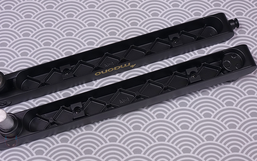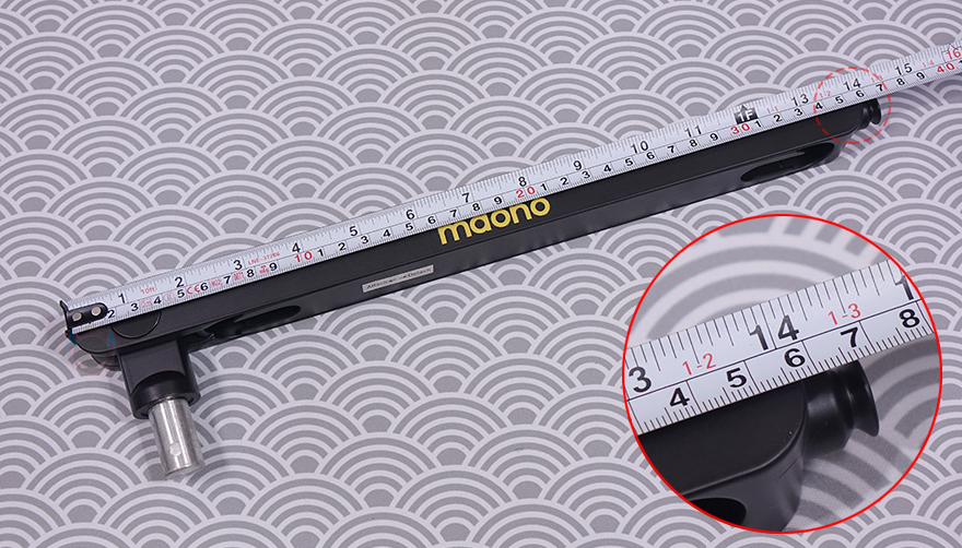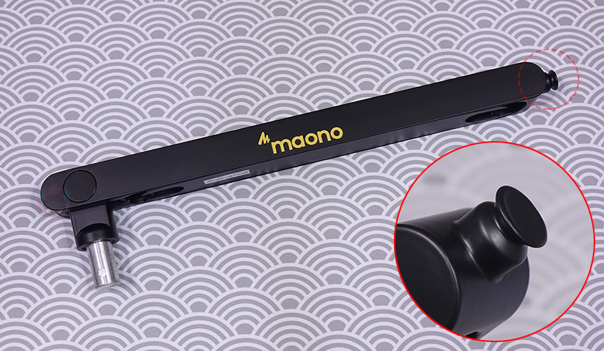 그럼, 본격적으로 MAONO(마오노) BA92 마이크 붐 암을 살펴보면, 개봉 시 기본 상태는 상/하로 각각 나뉘는 암(Arm) 2개가 있는데, 상단 암(Top Arm)은 MAONO 로고(logo)를 새겨놨으며, 길이도 하단 암(Bottom Arm)보다 좀 더 깁니다. 좀 더 정확히는 상단 암은 355mm가 넘고, 하단 암은 넘지 않는 길이죠. 물론, 암 재질은 앞서 제품박스 표기에서 확인했듯이 알루미늄(Aluminum)이며, 상단 암 앞부분에는 뒤에서 다시 확인하겠지만, 볼헤드와 연결되는 연결부가 있으며, 반대쪽은 하단 암과 연결되는 연결부로 -25˚~70˚ 범위로 총 95˚의 각도조절을 할 수 있도록 지원하고 있습니다. 물론, 반대쪽에 움직임 압력조절을 할 수 있게 육각 나사도 적용되어 있죠. 하단 암은 특별한 거 없이 한쪽에는 상단 암과 연결되는 홈이 있고, 반대쪽에는 클램프와 연결되는 연결부가 있습니다.
