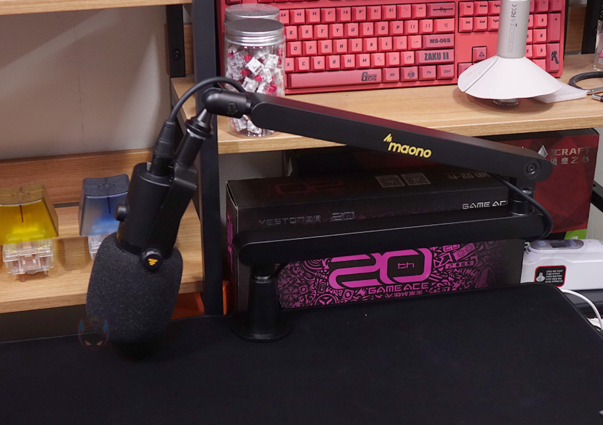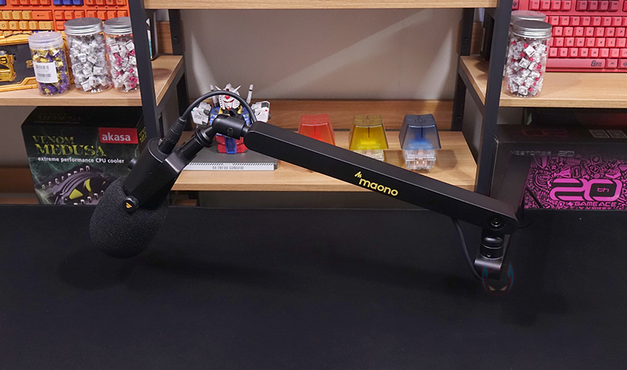 직접, MAONO(마오노) BA92 마이크 붐 암을 사용해 보면, 일단 장착을 할 때는 다른 마이크 붐 암처럼 클램프를 먼저 테이블에 고정해 줍니다. 그리고, 상하단 연결된 암을 끼워주면 장착은 끝이죠. 하단 암과 연결되는 클램프의 홈 부분 높이가 약 63mm이, 그리고 하단 암은 360˚ 회전만 가능하기 때문에 일반 마이크 붐 암보다 기본적으로 낮은 높이에서 1차 마이크 위치 조절이 되며, 마이크 높낮이 조절은 상단 암을 통해서 앞서 언급했듯이 최대 95 ˚ 범위에서 위아래로 조절할 수 있습니다.