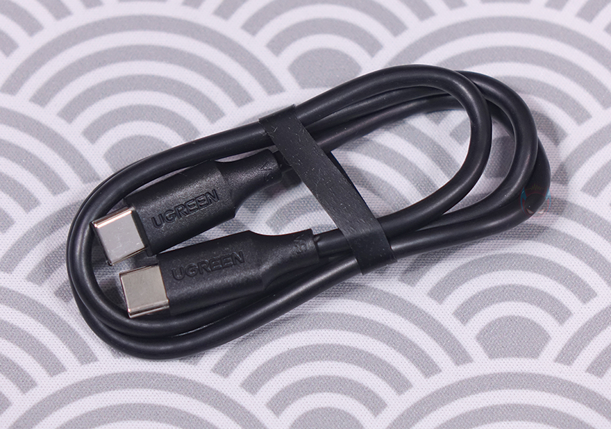 기본 제공되는 USB 충전 케이블은 양쪽 모두 USB Type-C 인터페이스를 갖추고 있으며, 최대 240W까지 지원합니다. 그리고, 휴대 및 보관용으로 제공되는 전용 파우치는 벨벳(Velvet) 소재를 사용했으며, 배터리와 케이블 모두 담을 수 있는 충분한 공간을 가졌습니다.