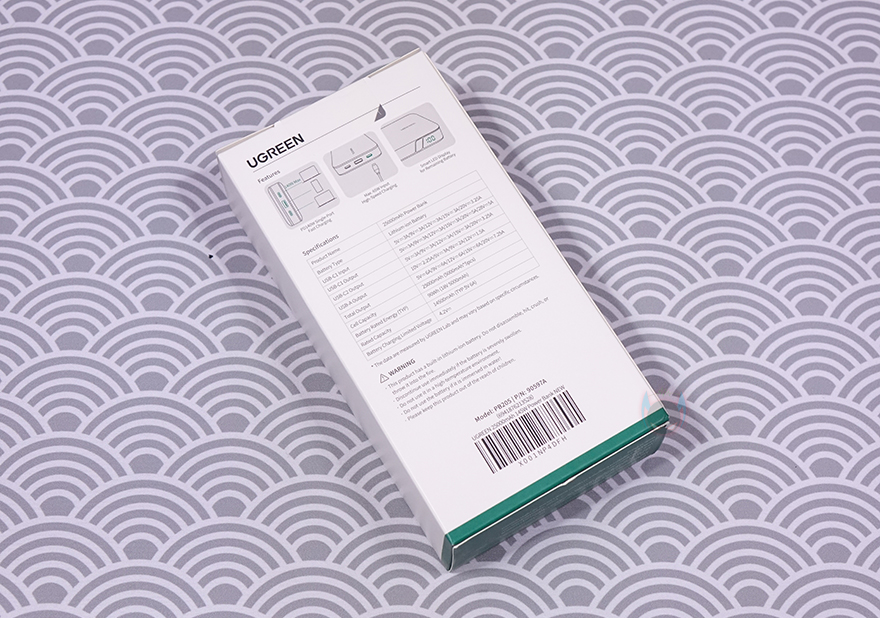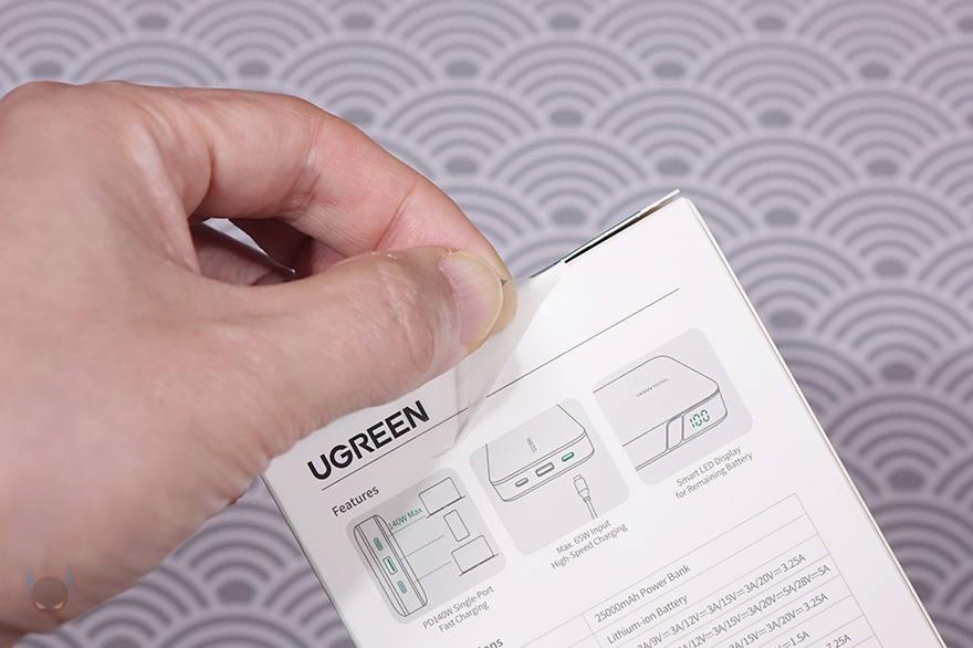 유그린(UGREEN)은 케이블 제품군을 제외하면 대부분의 제품 패키지를 박스형으로 포장하죠. 145W 25,000mAh 보조배터리 역시 박스형 패키지로 전면에는 제품 이름과 함께 제품 이미지 그리고, 시작에서 언급했던 PD 3.1 규격의 고속충전, 항공편 승인, 저속 충전 지원을 주요 특징으로 표기해놨습니다. 또한, 박스 후면에는 단일 포트 최대 출력과 배터리 충전 최대 속도, 뒤에서 확인하겠지만, 측면 작동상태를 확인할 수 있는 스마트 LED 디스플레이 표기를 추가로 표기해 놨으며, 아래에 제품 기본 사양을 표기해 놨는데, 이 제품의 모델명이 PB205라는 걸 확인할 수 있죠. 물론, 각 포트별 충전속도 상세하게 표기해 놨습니다.